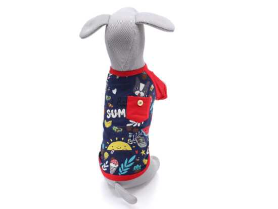 Tričko pro psa, které se snadno obléká přes hlavu unosí mazlíčci menšího vzrůstu. Kvalitní materiál je prodyšný a pružný. Ochrání před ochlazením během jarních a podzimních měsíců. Zároveň psíka ochrání před ušpiněním. Během opravdu horkých letních dnů, můžete tričko namočit, čímž pejska zchladíte. Na výběr je k dispozici hned několik stylových barev. Potisk se skládá z několika vtipných a zajímavých obrázků s letním motivem. Roztomilá kapsička na hřbetní straně podtrhne celkový vzhled. Tričko lze vyprat v pračce.