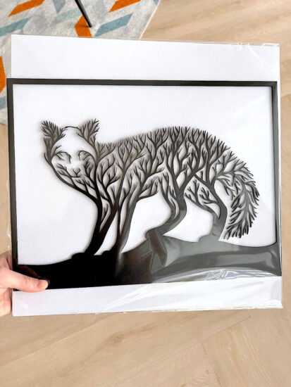 Dekorace na zeď skvěle zútulní a obohatí Váš interiér. Znázorňuje lišku, která působí velmi vkusně a elegantní. Bytový doplněk je originální nejen svým designem, ale také materiálem šetřící životní prostředí. Pověšení na stěnu je velmi snadné. Dekoraci můžete zavěsit pomocí lepicí pásky, která je součástí balení.