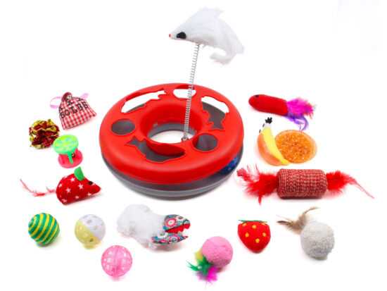 Set hraček pro kočku je vhodný pro koťata, dospělé i starší mazlíčky. Obsahuje plyšové ovoce, myšky, oblíbené míčky s rolničkou, šustící hračky, válečky s barevnými pírky a interaktivní labyrint opatřený vnitřním balónkem a myškou na pružině. Celkově se v balení nachází 15 různých hraček. Různorodé složení zvýší zájem kočičích společníků ke hraní. Dováděním se kočka učí obratnosti, vytrvalosti a celkově cvičí své lovecké dovednosti. Labyrint s myškou doporučujeme naplnit oblíbenými pamlsky, které přilákají mazlíčka ke hraní a odmění po “náročném lovení”.
